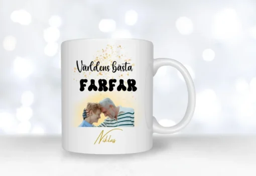 Skapa en personlig mugg till mormor, farmor, morfar eller farfar med LuxePresent. Anpassa med bilder och text för en gåva som varar och värmer hjärtat!